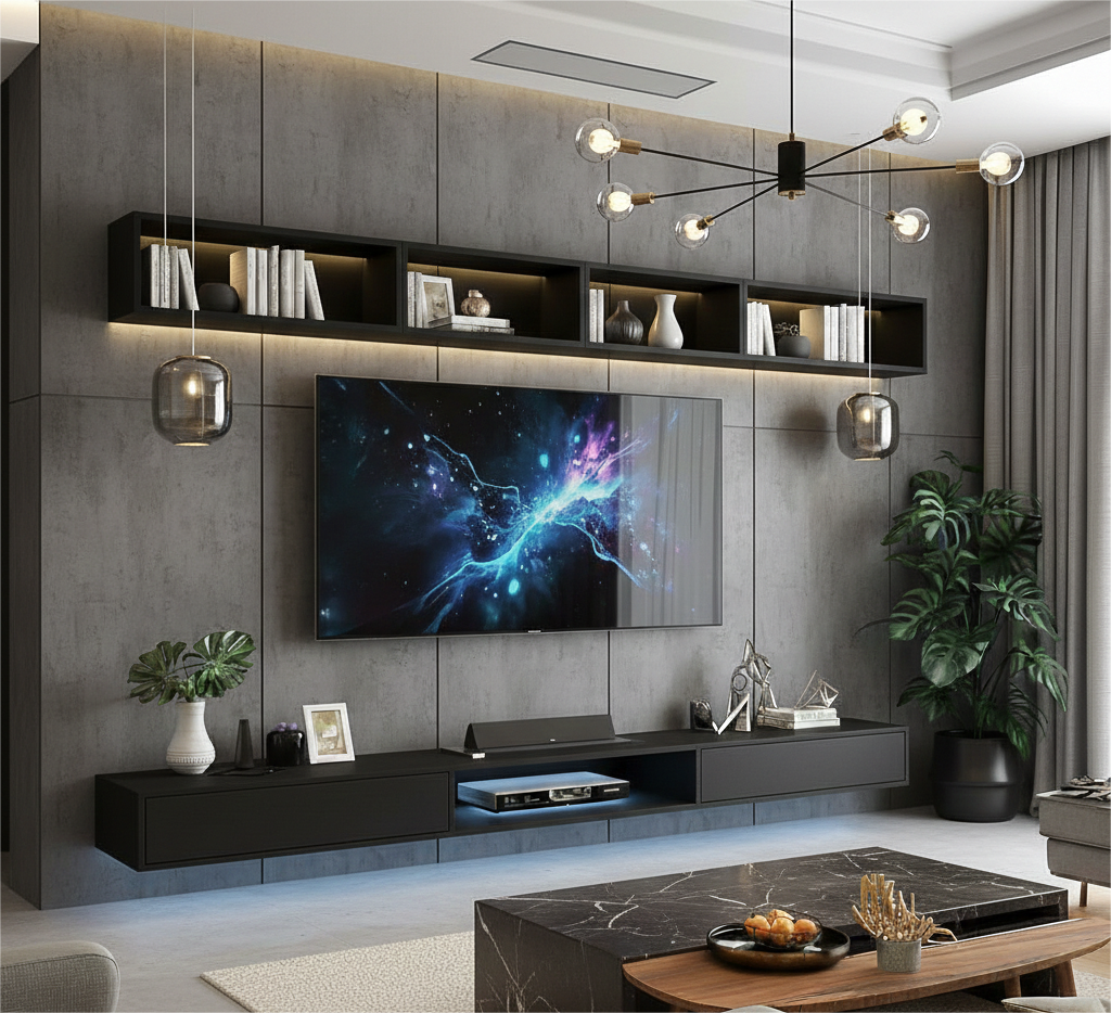A beautifully designed modern TV wall does more than just hold your television—it becomes the heart of your living room, the main attraction that sets the tone for your entire apartment’s interior. Whether you choose a minimalist floating unit, a warm wooden panel, a luxurious marble backdrop, or a textured fluted design, the key is to create harmony between functionality, aesthetics, and space management. Today’s homeowners prefer clean lines, smart storage, concealed wiring, and mood-enhancing lighting that elevate both comfort and style. And with the increasing popularity of compact apartments, every inch matters—so selecting the right TV wall design can completely transform the look and feel of your home.